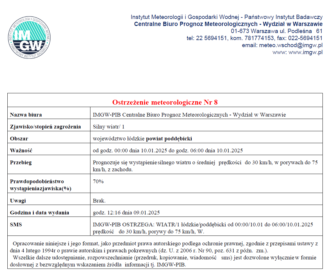Ostrzeżenie meteorologiczne - silny wiatr