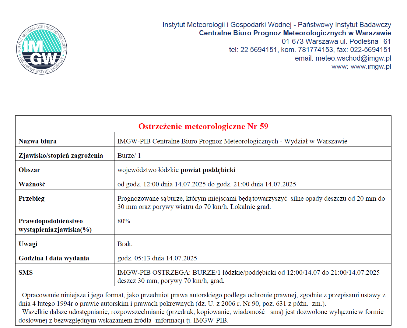 Ostrzeżenie meteorologiczne - burze